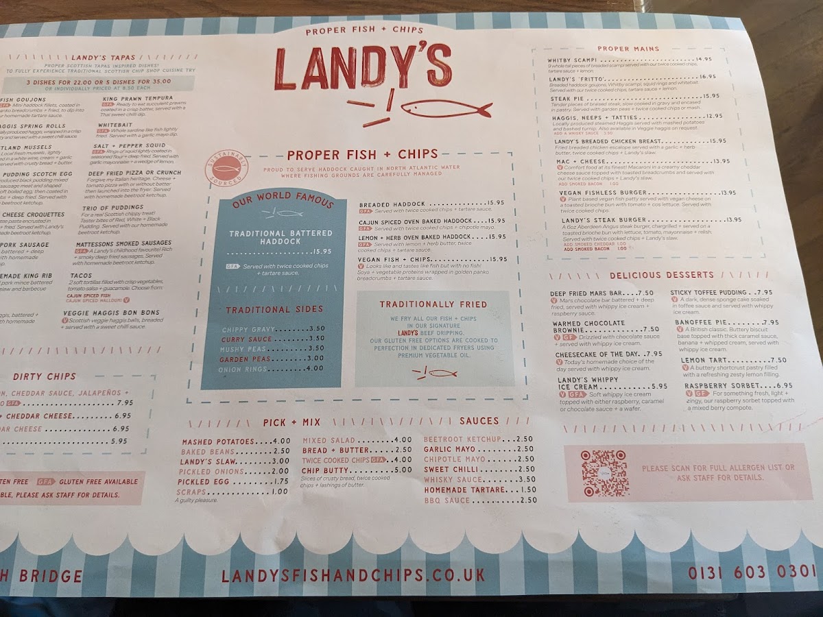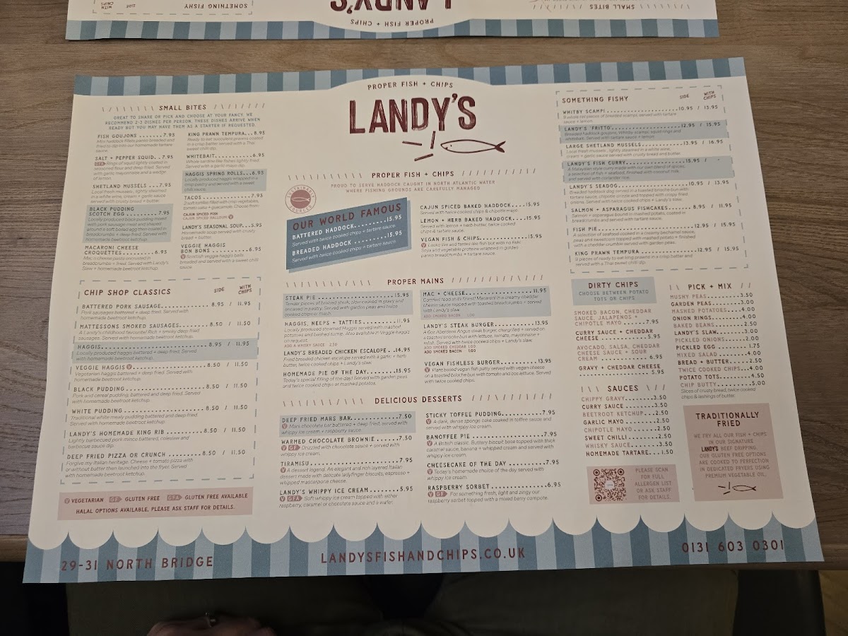 Welcome to Landy's Fish and Chips, a vibrant eatery located at 29-31 North Bridge, Edinburgh. Renowned for its authentic Scottish fare, this gem specializes in various styles of fish and chips, featuring five tantalizing options to satisfy any palate.
